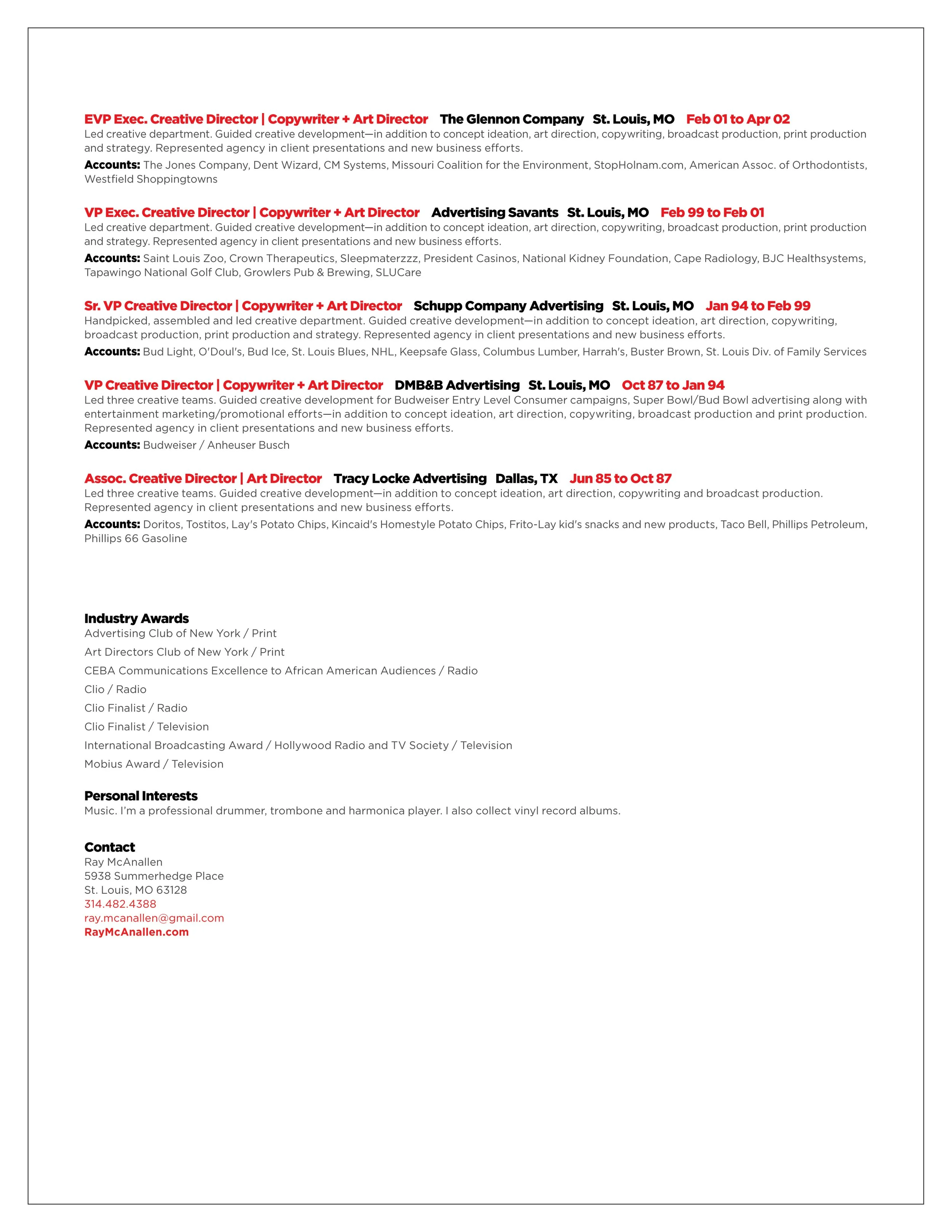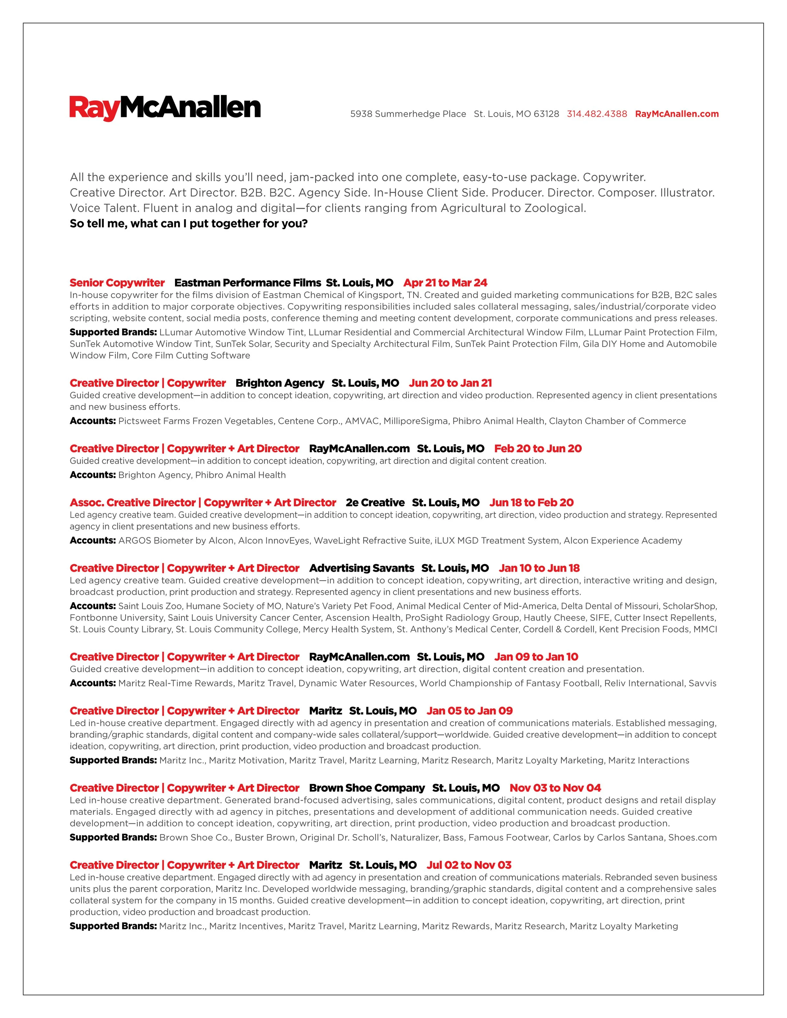 RESUME: Copywriter. Art Director. Creative Director. And more.